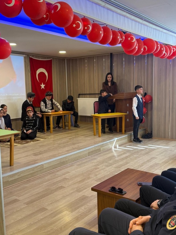 Etkinlikte, İstiklal Marşı’nın yazıldığı dönemin atmosferini yansıtan bir tiyatro gösterimi sahnelendi. İlçe halkımızın, “İstiklal Marşı Nedir?” sorusuna verdiği anlamlı cevapların yer aldığı video gösterimi ile milletimizin marşa olan bağlılığına tanıklık ettik. Ayrıca, İstiklal Marşı işaret dili ile de seslendirilerek, tüm katılımcılara duygusal bir deneyim sunuldu. Okulumuzun korosu tarafından seslendirilen 12 Mart şarkısı ile coşku dolu anlar yaşandı. Oratoryo Gösterisi ile programımıza derin bir anlam katıldı. Bu özel gösteride, İstiklal Marşı’nın her bir dizesinin ardındaki tarihi ve manevi değeri vurgulayarak, katılımcılarımıza bu kutlu günde bağımsızlık mücadelesinin ne kadar önemli olduğunu hatırlattık. Kur’an-ı Kerim tilavetiyle programımıza manevi bir derinlik katıldı ve sergide Mehmet Akif Ersoy ile İstiklal Marşı konulu sanat eserleri beğeniye sunuldu.